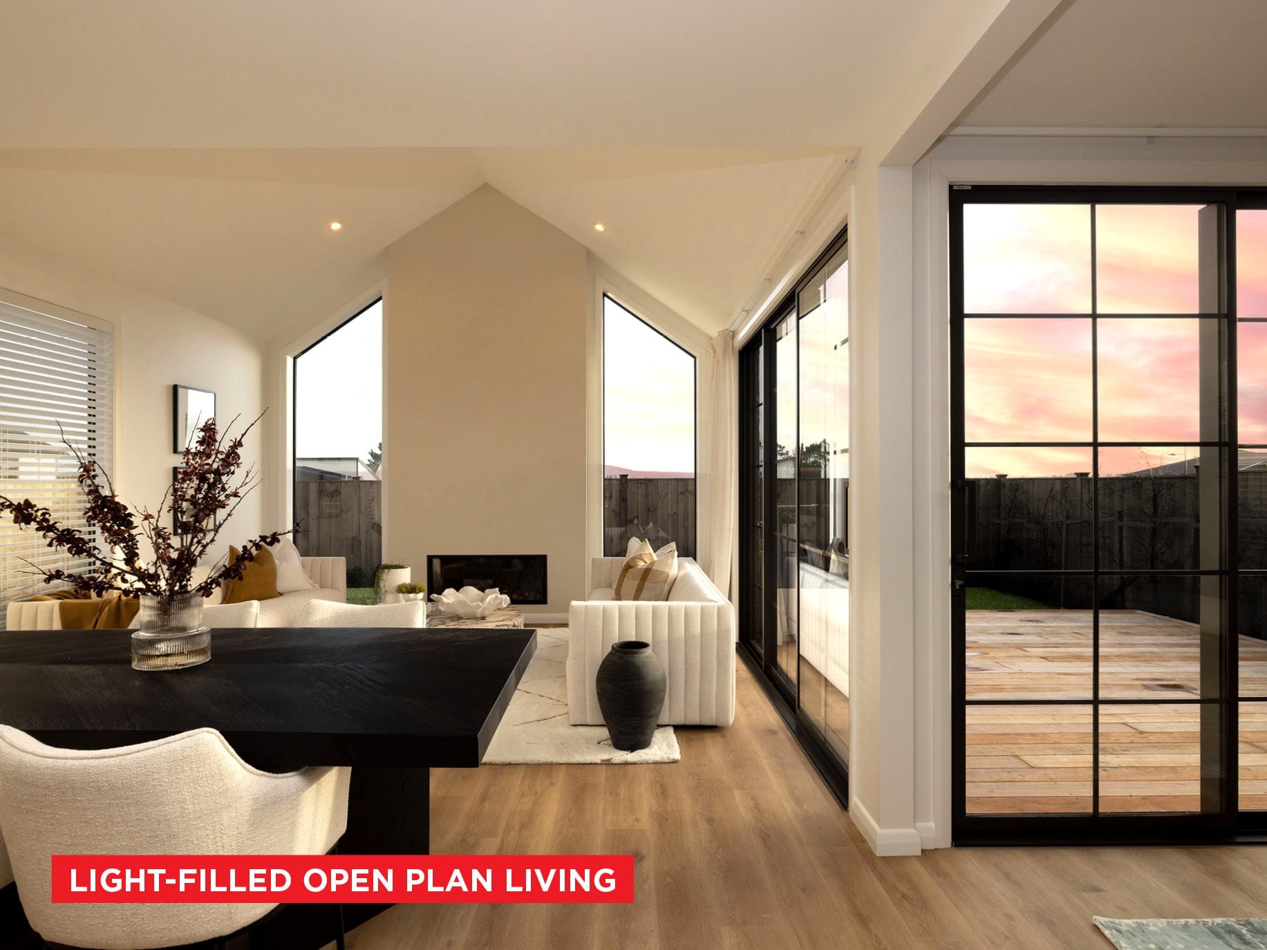A bold statement in form and function, this house and land package in Hobbs Bay Estate combines sleek vertical cladding, gabled form, and a sculptural street presence. Inside, enjoy a gallery-style layout with a designer kitchen, walk-through scullery, seamless indoor-outdoor flow, and an upstairs master retreat with views, sun, and privacy. Thoughtfully designed for relaxed living, it’s the perfect balance of style and comfort. Located in Hobbs Bay Estate—just minutes from Gulf Harbour Marina, beaches, golf, and schools—you’ll be part of a master-planned coastal community with tree-lined streets, quality landscaping, a coastal boardwalk, high-speed fibre, and a planned marina right on your doorstep. Get in quick to customise this design to suit your lifestyle and be part of one of the most exciting coastal developments north of Auckland.